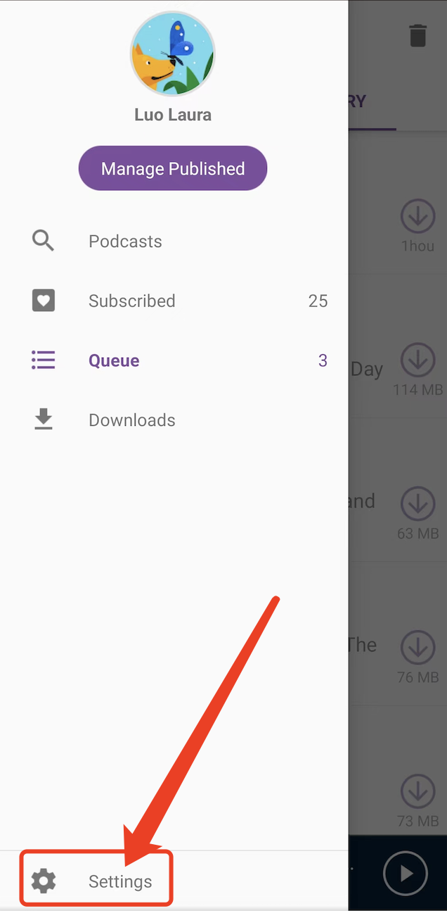 Please go to Castbox app "Personal tab" - click "Settings" - scroll down, and you will see the "OPML Import" option, click it, and then following the instructions in the app. Android version: If you are using our purple version, you can click to ...