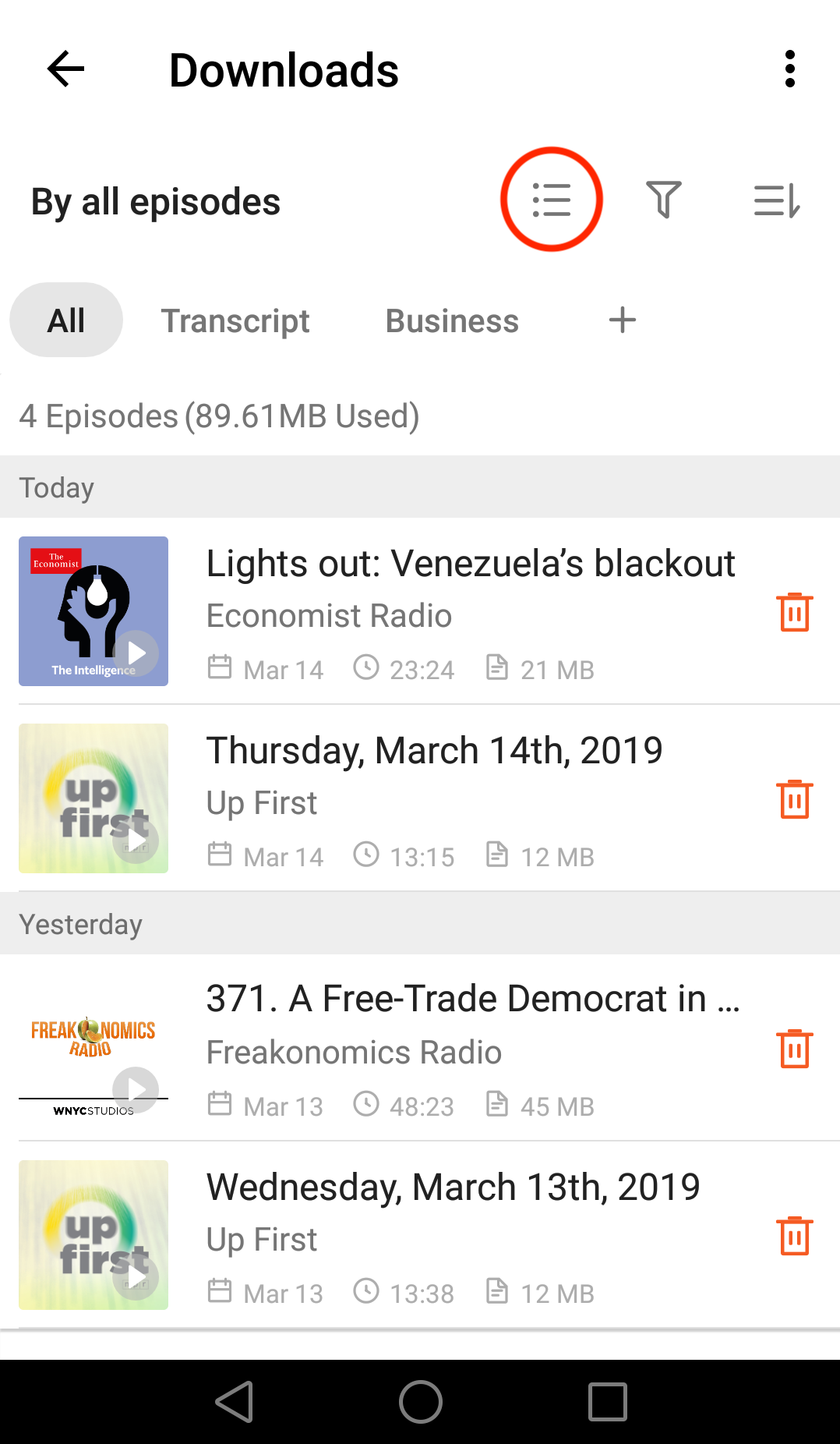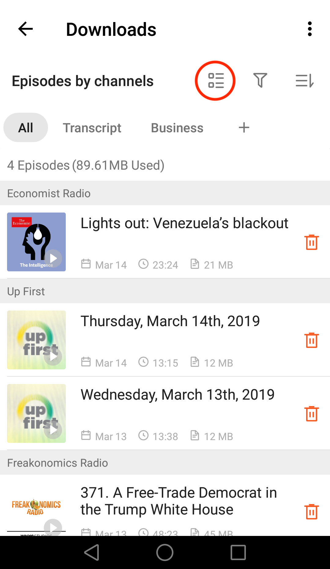 For Android users If you are are using Android 7.1 and above, you may press and hold the Castbox icon on your phone to use the shortcut feature - four options will appear - "Subscribed", "Downloaded", "Playlist" and "New Episodes". You can also add ...