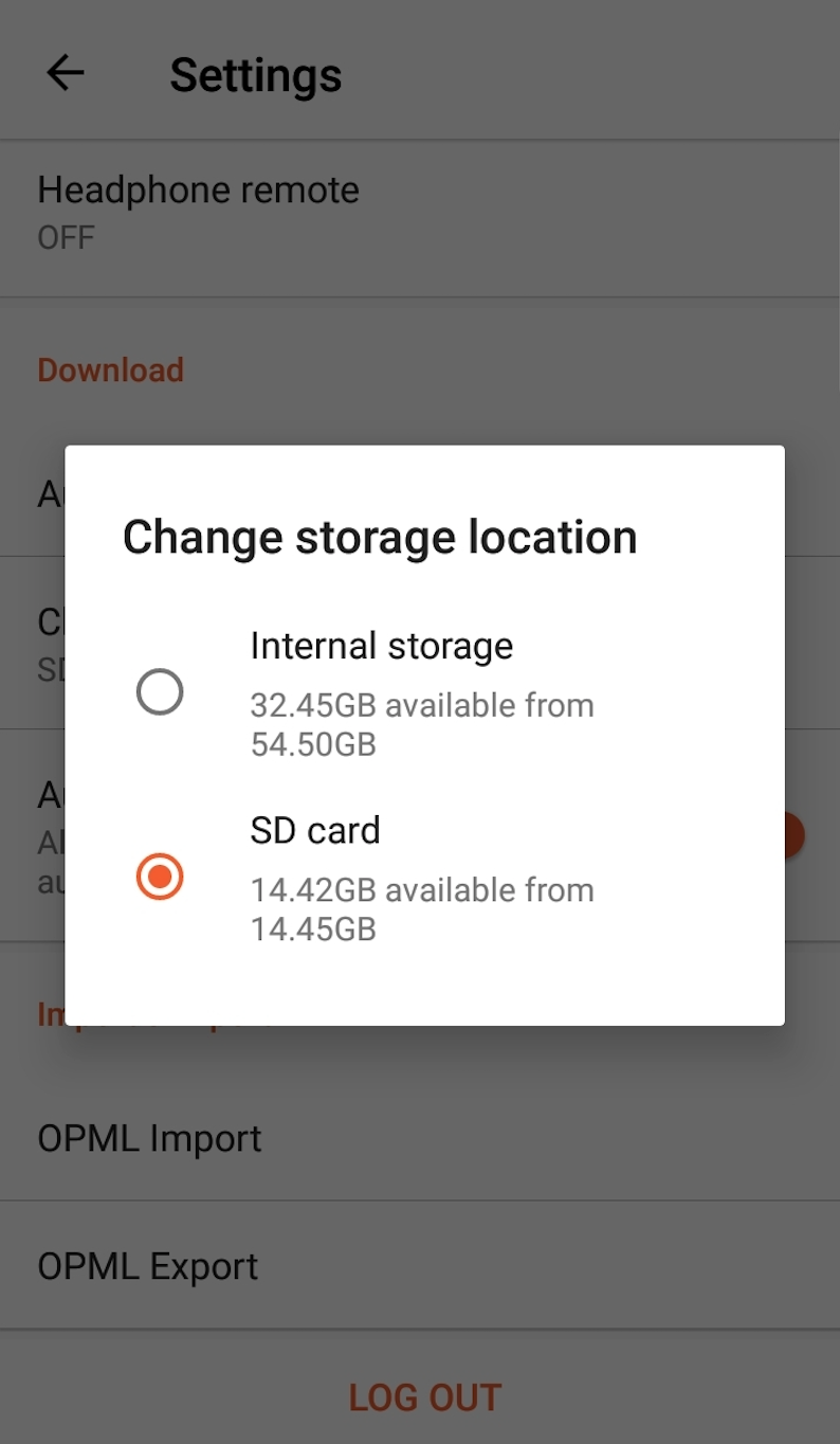 For the previously downloaded episodes, we're afraid that you may not be able to move them directly. We suggest you finish listening to them first, then you could go to the app Settings, scroll down, tap "Change storage location" and set it to SD card as shown in pic.1&2. Thus, the newly downloaded episodes would be saved to your SD card.