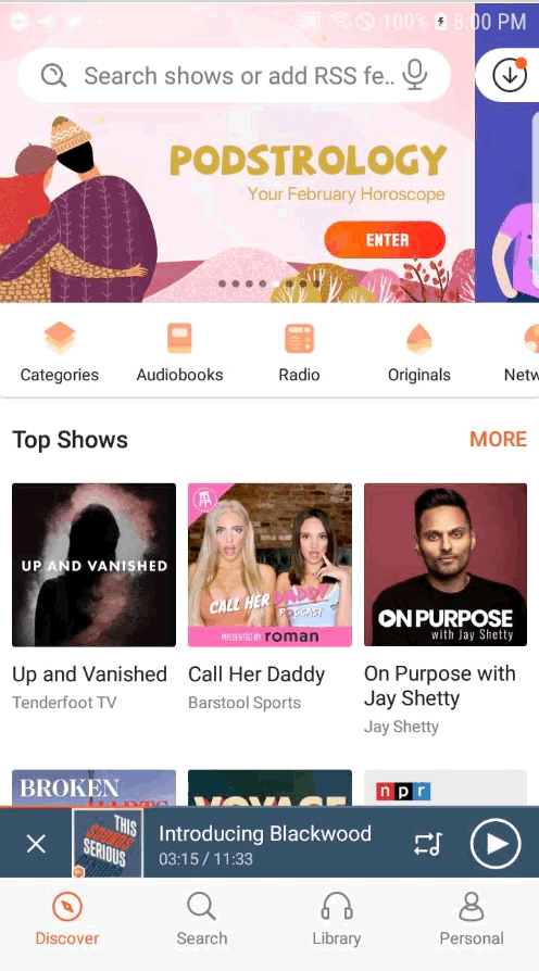 easy-to-use floating "player bar" at the bottom of Castbox app. No matter which