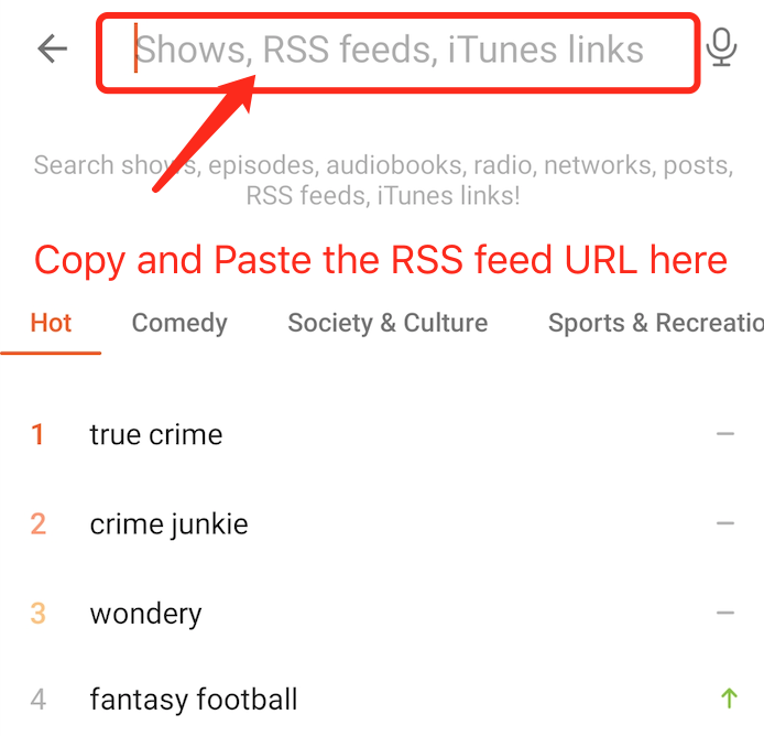 After that, you could simply search the supplemented URL in the search bar and import it on Castbox Android or iOS App.